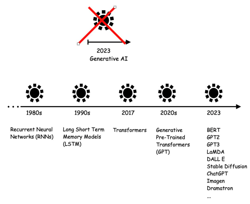 The Transformer algorithm, our most current model for Generative AI, has been a work in progress for the last few decades. It is not just an outcome of 2023.